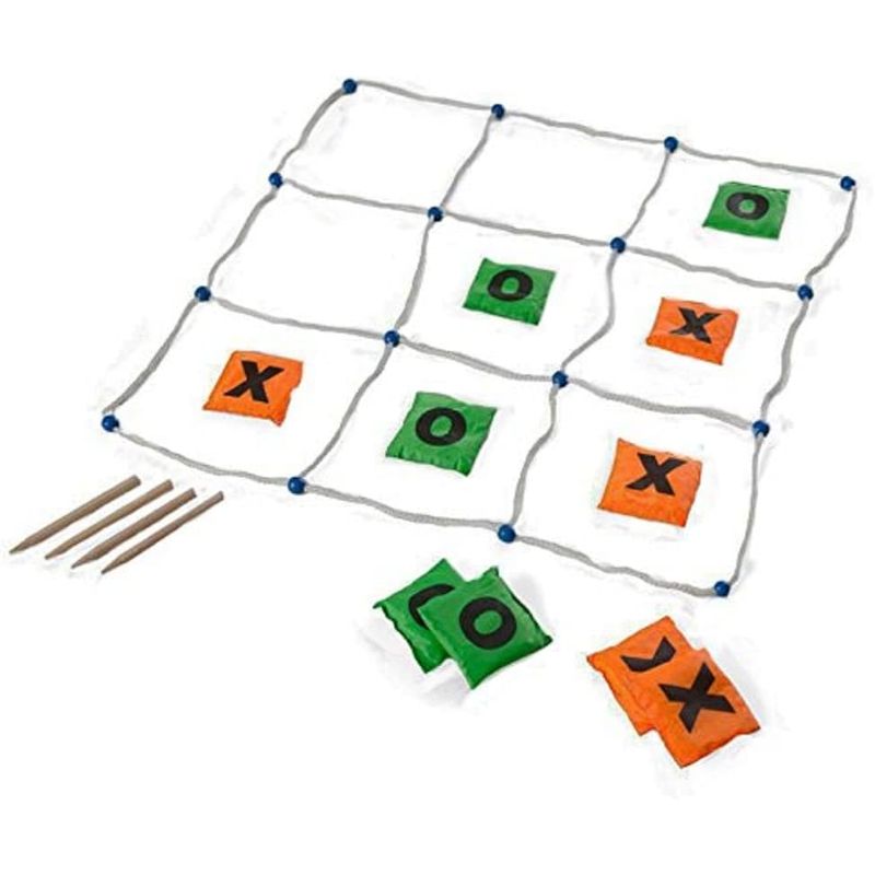 Jeu à lancer en plein air avec 4 bâtons en bois et sacs à lancer remplis de sable. Cadre en coton (70×70 cm). Parfait pour anniversaires et animations enfants !