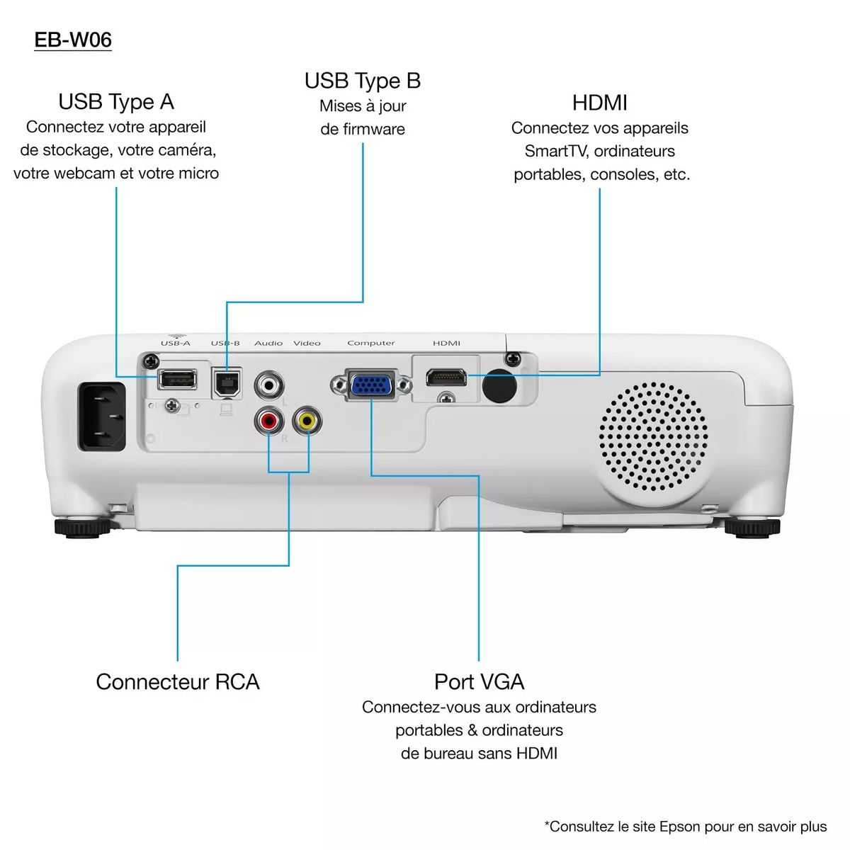 Le vidéoprojecteur Epson EB-W06 est parfait pour vos réunions, séminaires, projections en mariage, soirées karaoké, ciné plein air ou présentations professionnelles.